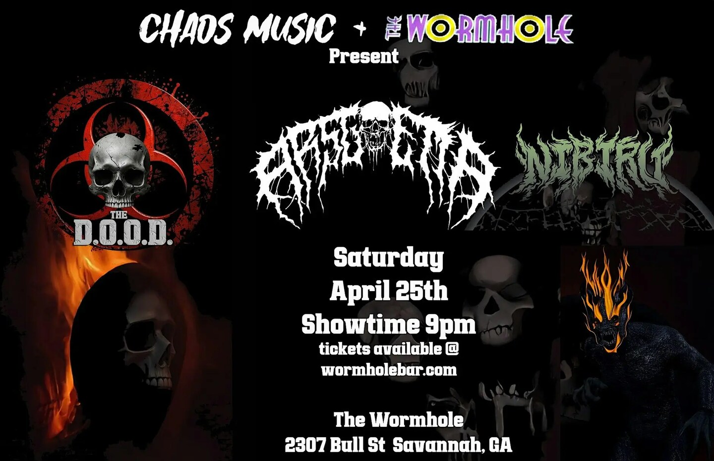 Get ready to dive into some heavy metal chaos with D.O.O.D. and Ars Goetia-Nibiru tearing it up live at the wormhole!